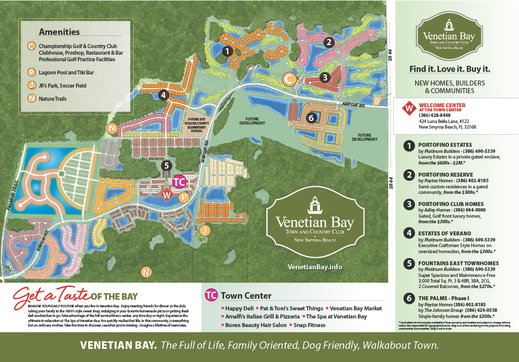 Conveniently located in New Smyrna Beach, Venetian Bay is located next to one of Florida’s premier beaches and within comfortable driving distance to Daytona Beach and Orlando, providing easy access to a number of recreational and cultural activities.